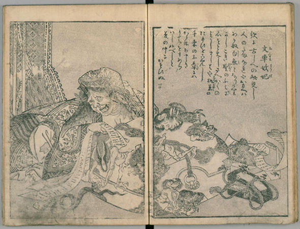 『富嶽三十六景』や『鳳凰図屏風』などで知られる浮世絵師。知らない人はいないくらい有名な人ですね。そんな北斎の代表的な妖怪画といえば『百物語』。現存するのは『お岩さん』『さらやし記』など5点のみですが、どれも妖怪が生き生きと描かれていて、北斎の画力の高さを物語っています。本来なら北斎の描いたものをお見せしたかったのですが、デジコレにはなかったため、1932年に出版された『浮世絵標準画集 第10巻』からご紹介。カラーじゃないのが悔やまれます。