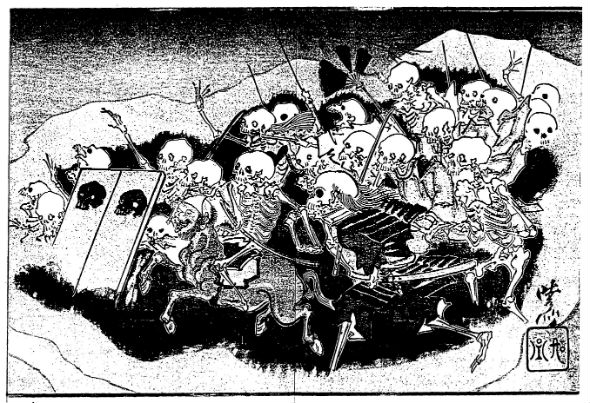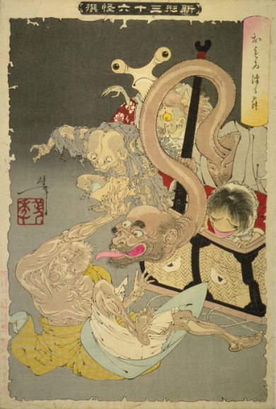 彼の作品で有名なものとして『新形三十六怪撰』という妖怪画の連作があります。作品の後半は芳年の死後、弟子が制作しています。芥川龍之介や江戸川乱歩、三島由紀夫などの文豪にも愛されていたようです。