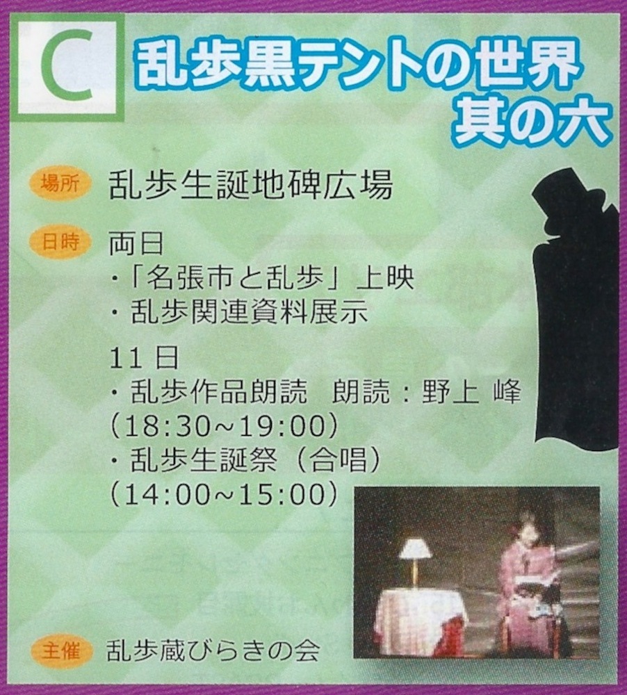 乱歩関連イベントも、盛大かどうかは別にして、とにかくくりひろげられることになっております。