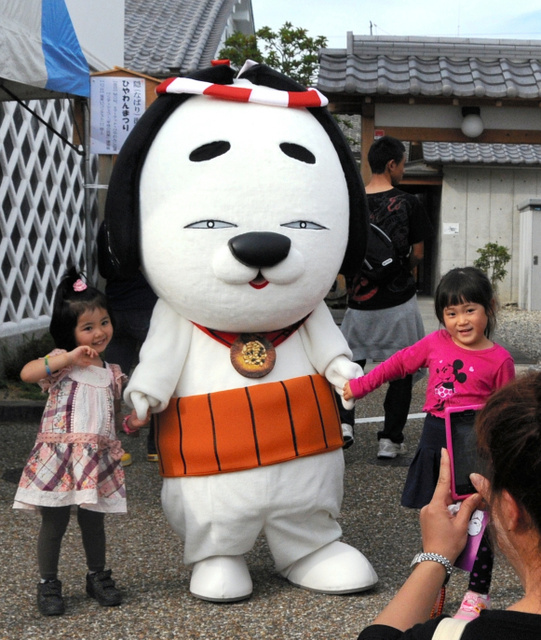隠街道市は名張地区まちづくり推進協議会が主催し、12日まで。一帯はステージイベントや出店、市長公認アイドル「縁夢寿美(えんむすび)ガールズ」のライブなどでにぎわう。ひやわんは12日も登場する。