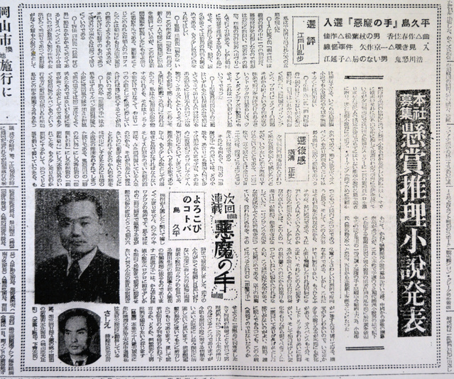 岡山)横溝・乱歩、2大名探偵の生みの親が懸賞小説選者
