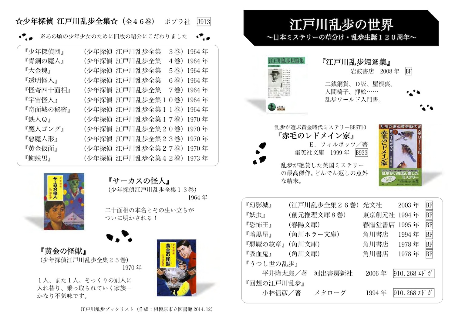 ▼相模原市立図書館:企画展示 江戸川乱歩の世界