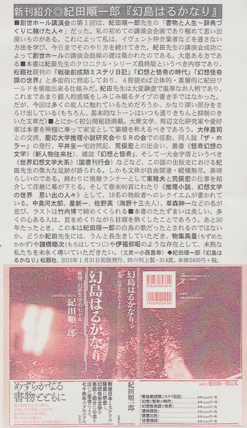 「新刊紹介◎紀田順一郎『幻島はるかなり』」だけ、切り貼りしておきます。
