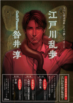 「BL乱歩(第1巻)」「変態乱歩(第2巻)」「血塗(ちまみ)れ乱歩(第3巻)」と、各巻とも斬新な切り口で乱歩作品に迫り、ビジュアル面は、『In These Words』などで知られるアメコミ出身のイラストレーター・マンガ家の咎井淳さん(Guilt|Pleasure)が担当、新たな乱歩の魅力を伝える。