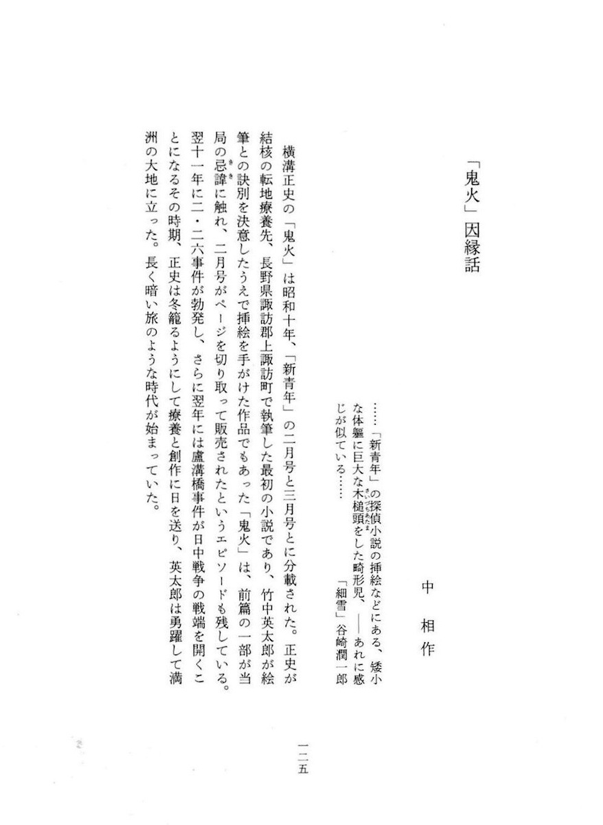 本日は、解説の「『鬼火』因縁話」を一ページだけごらんいただきたいと思います。