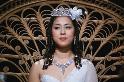お正月の3時間特番としてお茶の間に届けられた『天国と地獄の美女』では、人見広介の、いや江戸川乱歩が夢想したユートピアの世界が具体的に映像化されている。菰田源三郎に成り済ました広介(伊東四朗)は源三郎の若妻・千代子(叶和貴子)を連れて、出来上がったばかりのパノラマ島を案内する。海底トンネルでは魚たちが回遊する様子が一望でき、巨大水槽では人魚たちの群舞かと見間違える妖艶な水中バレエが繰り広げられている。珍しい動植物たちが生息する地底の大平原をさらに進むと、最上層にある神殿では様々な人種の裸女たちが歌い踊っている。そこはエロティックさを極めた快楽のテーマパークだった。そして千代子はこの楽園の美しき女王さまとして祭り上げられる。本作の主人公はパノラマ島そのものであり、明智小五郎はパノラマ島で起きた出来事を視聴者に伝える語り部に過ぎない。
