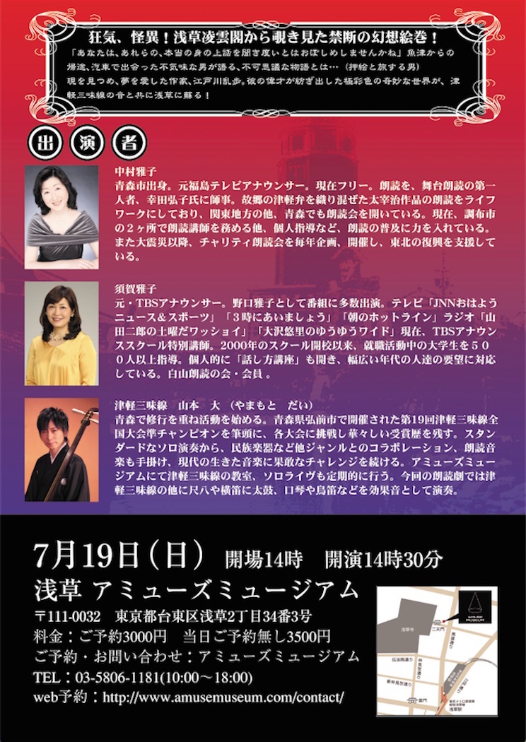 ▼AMUSE MUSEUM:朗読音劇、浅草に蘇る江戸川乱歩の世界!