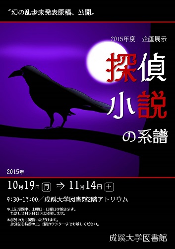 ▼成蹊大学図書館:図書館企画展示『探偵小説の系譜』(2015年9月25日)