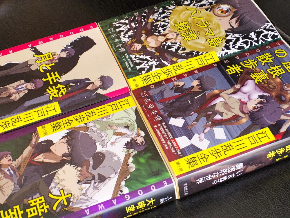 テレビアニメ「乱歩奇譚」とタイアップしたカバーで、アニメの原案とされる作品を収録した四冊に巻かれました。