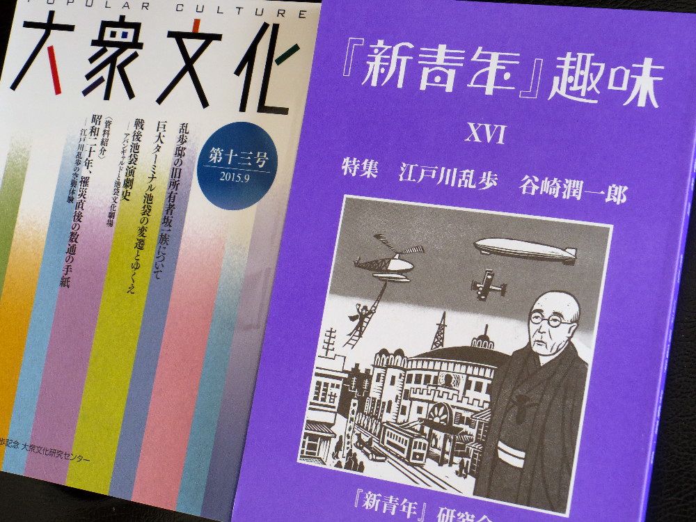 いっぽう、ありがたくもご寄贈いただいたのが、立教大学江戸川乱歩記念大衆文化研究センターの「大衆文化」第十三号、ならびに、『新青年』研究会の「『新青年』趣味」第十六号。