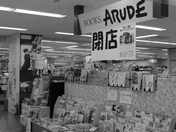 ブックスアルデ、という地元資本の本屋さんの支店にも、でかでかと「閉店」の貼り紙が。