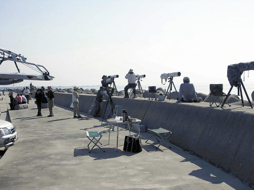 蜃気楼を待つ人々。乱歩もこの近くの浜辺を歩いたのだろうか