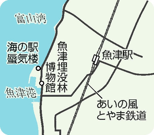 小説では「魚津の浜」としか書かれておらず、舞台となった場所を特定するのは難しいが、蜃気楼を見るなら富山湾全体を見渡せる魚津港周辺の海岸が最も良いとされ、魚津市ではこの一帯を「蜃気楼展望地点」に指定している。出現予測の高い日には三脚が林立し、カメラマンたちが待ち構える光景は春の風物詩でもある。