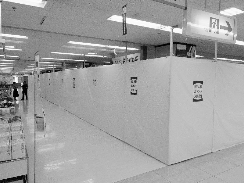 パネルの貼り紙には「6月上旬USランドOPEN予定」と記されておりますが、いつも閑散としていて高齢者ばかりが目立つリバーナにUSランドを入れてもなあ、という気はいたします。