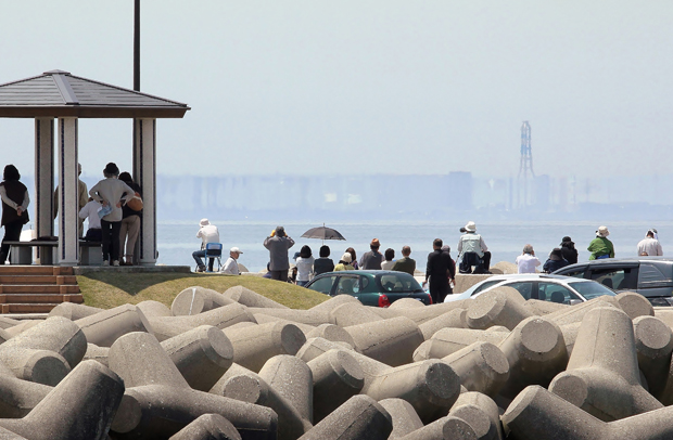 蜃気楼を眺める大勢の観光客(石沢啓一さん提供)