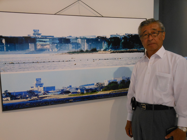 蜃気楼を撮影した写真を紹介する石沢啓一さん