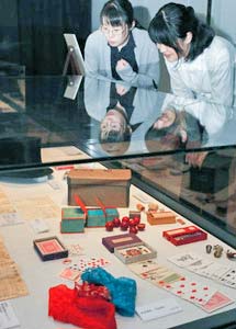 企画展では二人の手紙や、共通の趣味だったトランプをはじめとした手品道具など約百点を展示。手品や立体写真など「ハッとした驚き」を好んだ二人にならい、会場にはのぞき込むとドキッとするような仕掛けもある。