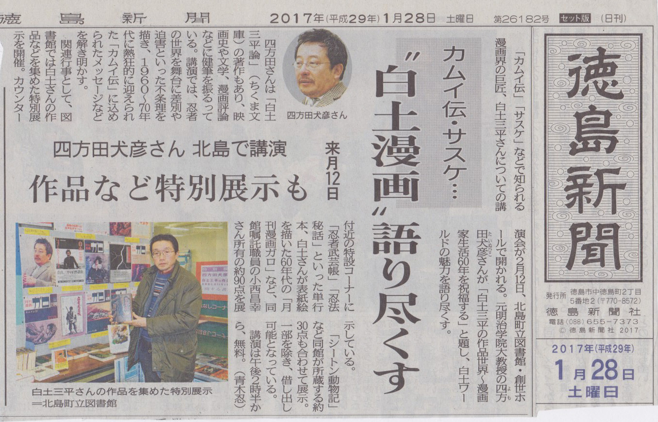 ところで、「創世ホール通信・文化ジャーナル」1月号に掲載された小西昌幸さんの「四方田犬彦さん講演会『白土三平の作品世界』にご期待下さい(続)」によりますと──