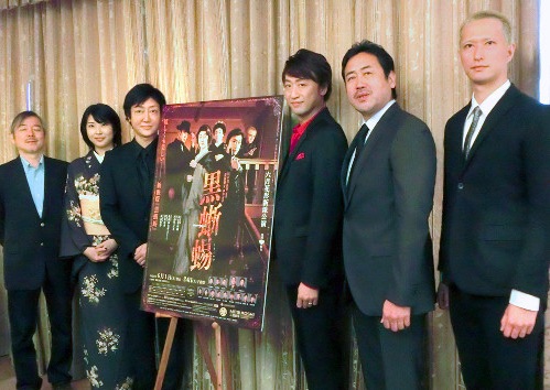 新派公演「黒蜥蜴」に参加する(左から)三越劇場で上演される6月新派公演「黒蜥蜴」に参加する(左から)演出の斎藤雅文氏、出演の春本由香、河合雪之丞、喜多村緑郎、永島敏行、秋山真太郎