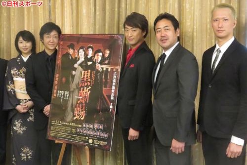 新派公演「黒蜥蜴」に出演する左から春本由香、河合雪之丞、喜多村緑郎、永島敏行、秋山真太郎