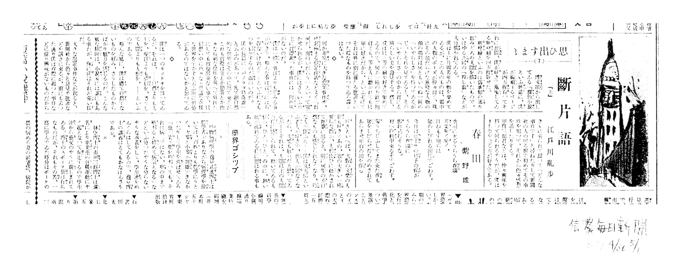 名張人外境:江戸川乱歩執筆年譜 > 昭和7年●1932
