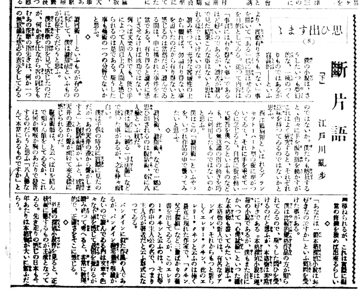 名張人外境:江戸川乱歩執筆年譜 > 昭和8年●1933